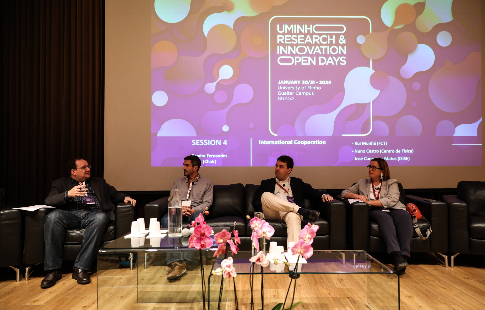 A cooperação internacional foi avaliada às 15h30, com Rui Munhá, pivô para questões europeias na Fundação para a Ciência e a Tecnologia, e os investigadores Nuno Castro, do Laboratório de Instrumentação e Física Experimental de Partículas (LIP-Minho), e José Campos e Matos, do Instituto para a Sustentabilidade e Inovação em Engenharia de Estruturas (ISISE). A moderação coube a Sandra Dias Fernandes, investigadora do Centro de Investigação em Ciência Política e professora da Escola de Economia e Gestão da UMinho. Já a mesa redonda sobre publicações científicas de acesso livre para todos trouxe duas referências na área – Eloy Rodrigues e Pedro Príncipe, dos Serviços de Documentação e Bibliotecas da UMinho.